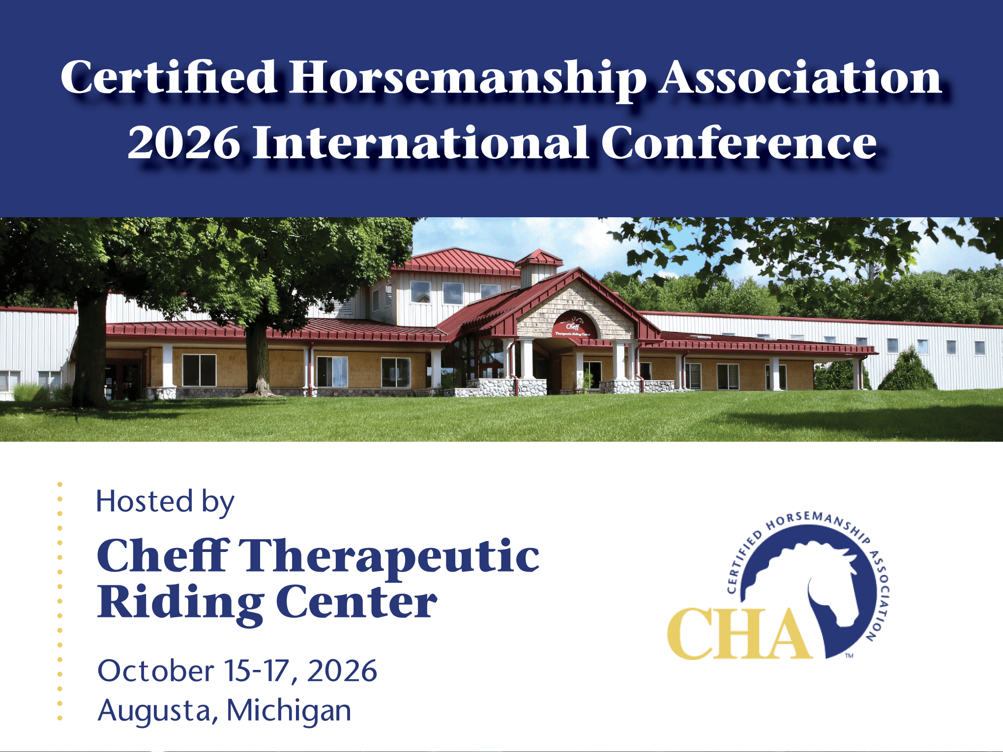 Changing Lives Through Safe Experiences With Horses Find An Equine Professional or Barn Near You Find Now Provided by Megan Stapley Photography Industry Leader in Horsemanship Education & Certification Equine Professionals or Find Horsemanship Education About CHA Already a CHA Member? Click Here Join Today or RENEW Shop Merchandise & Program Supplies Free Horsemanship Videos Educational Videos Donate Now Scholarship Fund, Memorial Fund and General Fund About / Contact CHA Staff & BOD CHA Certification Find Near Me international conference & Awards Regional Conferences & Volunteers How To Host Certification Clinics CHA Site Accreditation Equine Professional / Facility Find Near Me Classified Ads & Job Postings in the Equine Industry Webinars About/Contact Contact Grants & Scholarships Apply Now AdvertisIng & Media Kit CHA is the #1 trusted resource for equine professionals sponsors | Partners | Advertisers Join CHA or Subscribe 859-259-3399 Certified Horsemanship Association 1795 Alysheba Way, Suite 7102 Lexington, KY 40509 office@CHA.horse Subscribe!
